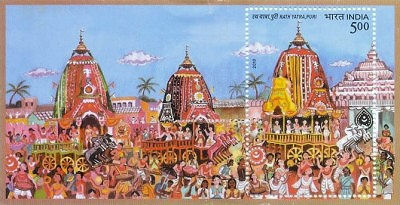 India post issued a postage stamp featuring the Rath Yatra wihich takes place at puri (Orissa) every year. This years Rath Yatra will take place on 13 July 2010.